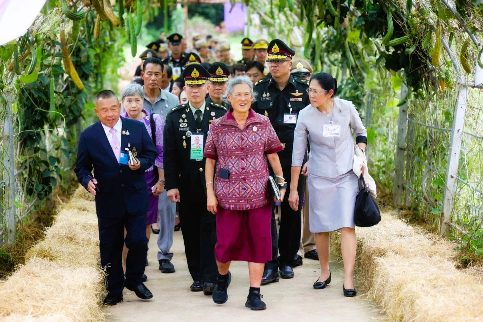 ต่อจากนั้นเสด็จพระราชดำเนินไปทอดพระเนตรความก้าวหน้า ของโครงการทหารพันธุ์ดี โรงพยาบาลอานันทมหิดล ซึ่งเริ่มต้นการดำเนินงานในปี พ.ศ.2562 พัฒนาพื้นที่ว่างเปล่า 8 ไร่ เริ่มจากปรับปรุงดินโดยปลูกปอเทืองสลับกับใช้ปุ๋ยคอก จัดทำแปลงเกษตรที่ได้เมล็ดพันธุ์จากศูนย์พัฒนาพันธุ์พืชจักรพันธ์เพ็ญศิริ ใช้น้ำบาดาลที่ได้รับการสนับสนุนจากกรมทรัพยากรน้ำบาดาล เมื่อโครงการประสบผล ได้ขยายพื้นที่เพาะปลูกเพิ่มขึ้นอีก 4 ไร่ มีการนำเทคโนโลยีมาช่วยพัฒนากระบวนการผลิตให้มีประสิทธิภาพมากขึ้น จนสามารถผลิตผักและพืชผักสวนครัวได้มากกว่า 20 ชนิด และก่อนจะเสด็จพระราชดำเนินกลับ ทรงมีพระราชปฏิสันถารแก่ผู้มาเฝ้าทูลละอองพระบาทรับเสด็จ และทูลเกล้าฯ ถวายของที่ระลึก ในครั้งนี้ด้วย