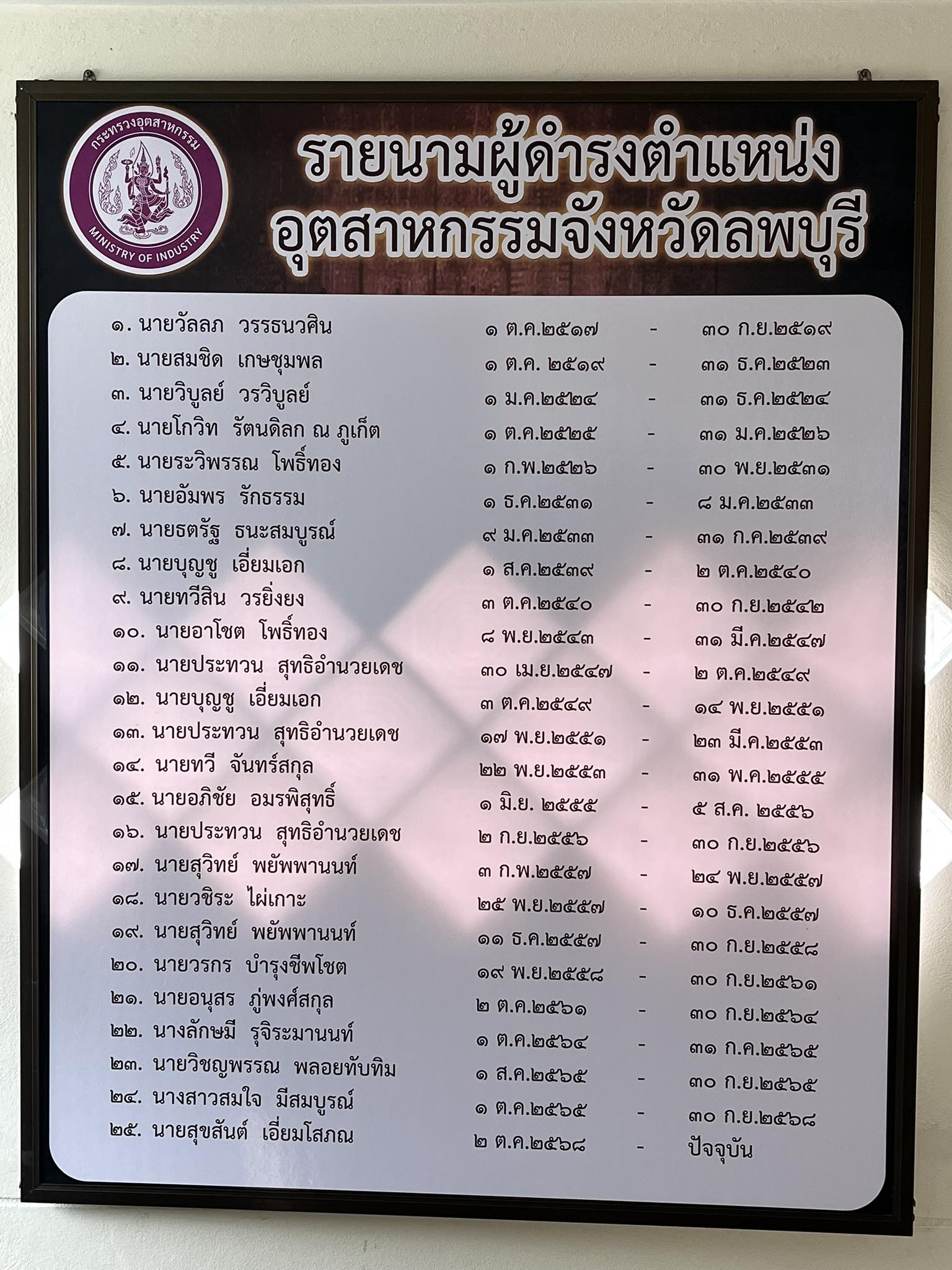 ในโอกาสนี้ อุตสาหกรรมจังหวัดลพบุรี ได้เข้ารายงานตัวในการปฏิบัติราชการกับ นายปรัชญา เปปะตัง รองผู้ว่าราชการจังหวัดรักษาราชการแทน ผู้ว่าราชการจังหวัดลพบุรี ณ ห้องปฏิบัติงานรองผู้ว่าราชการจังหวัดลพบุรี ชั้น 5 ศาลากลางจังหวัดลพบุรี