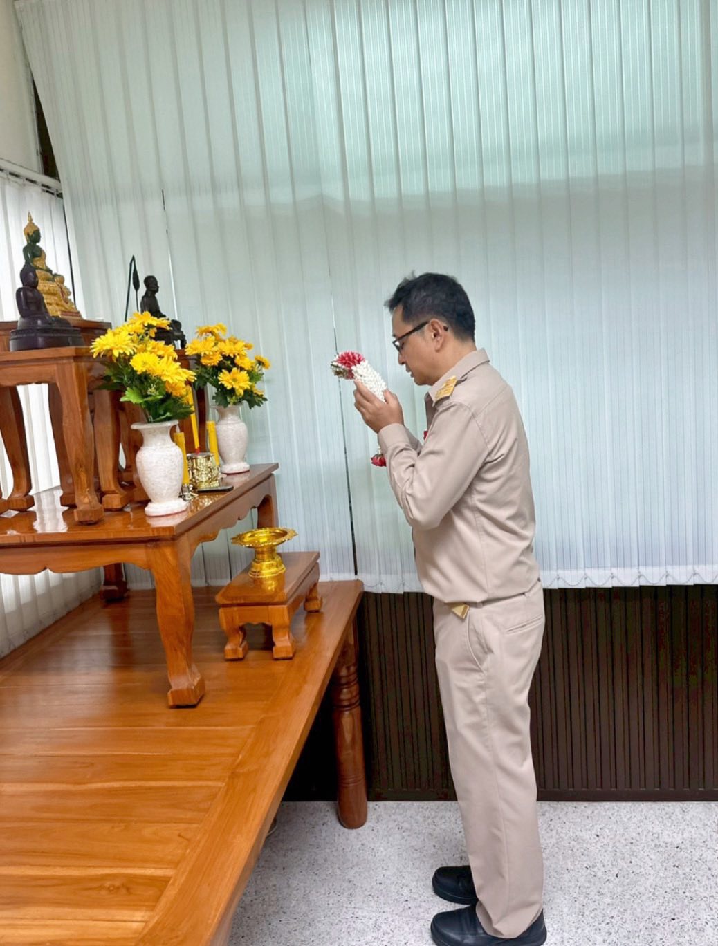 และกราบสักการะสิ่งศักดิ์สิทธิ์ ภายในสำนักงานอุตสาหกรรมจังหวัดลพบุรี อาทิ พระนารายณ์เกษียรสมุทร พระพุทธรูปประจำสำนักงานฯ ณ ห้องประชุมนารายณ์ ชั้น 3 ก่อนเข้าปฏิบัติราชการ ณ สอจ.ลพบุรี วันแรก