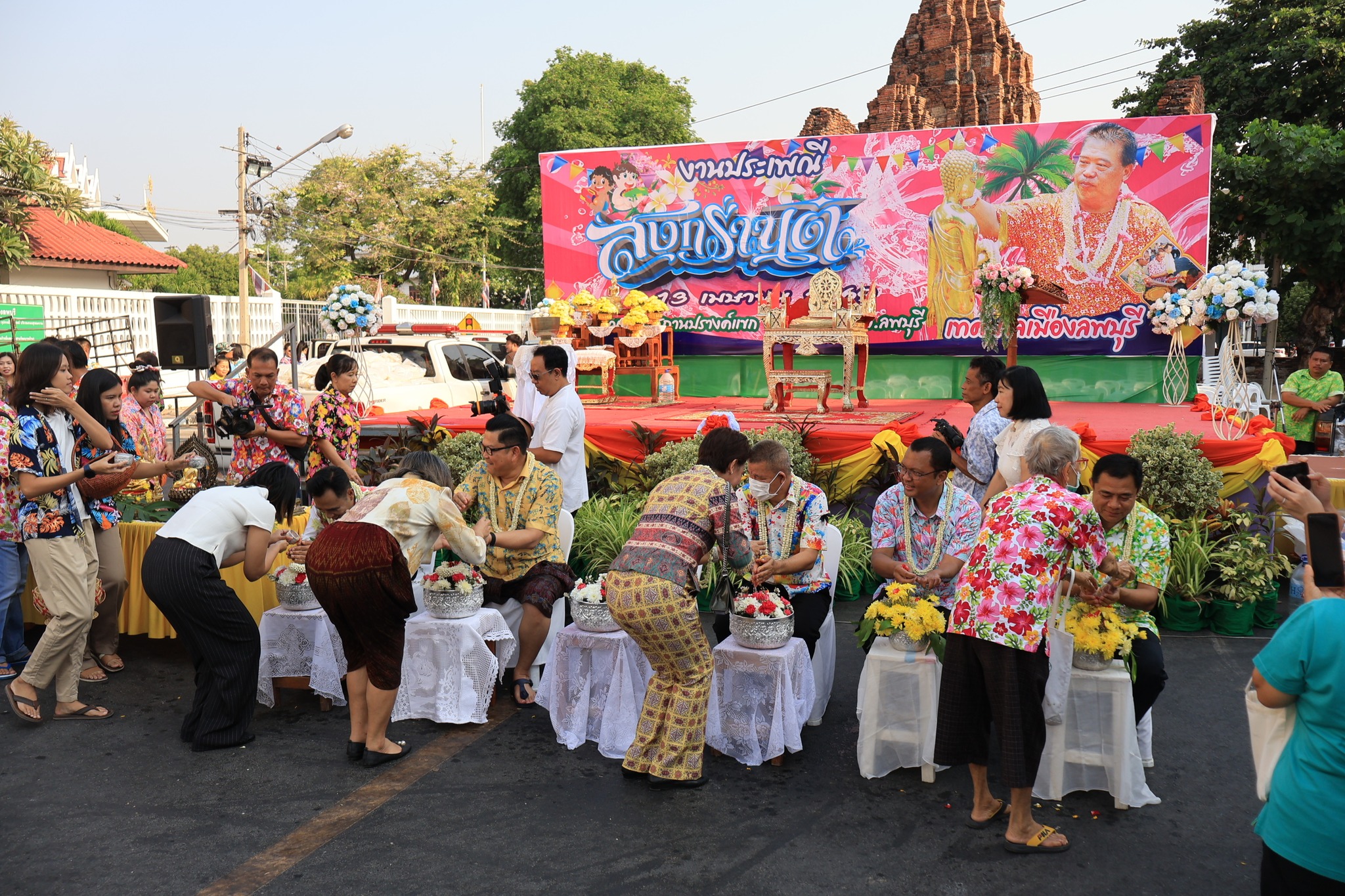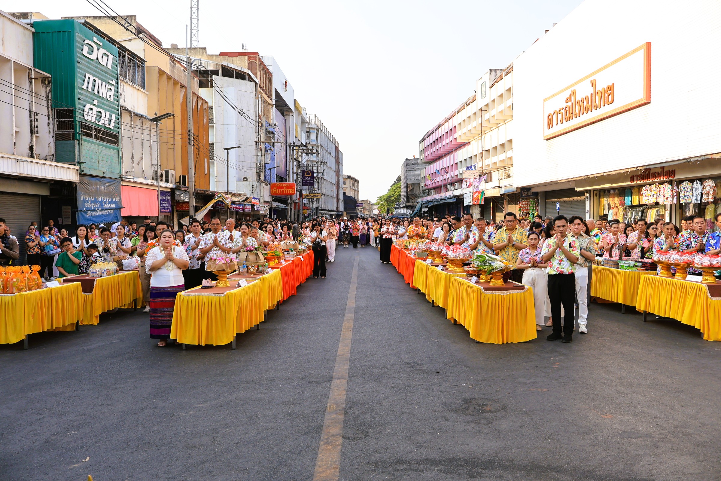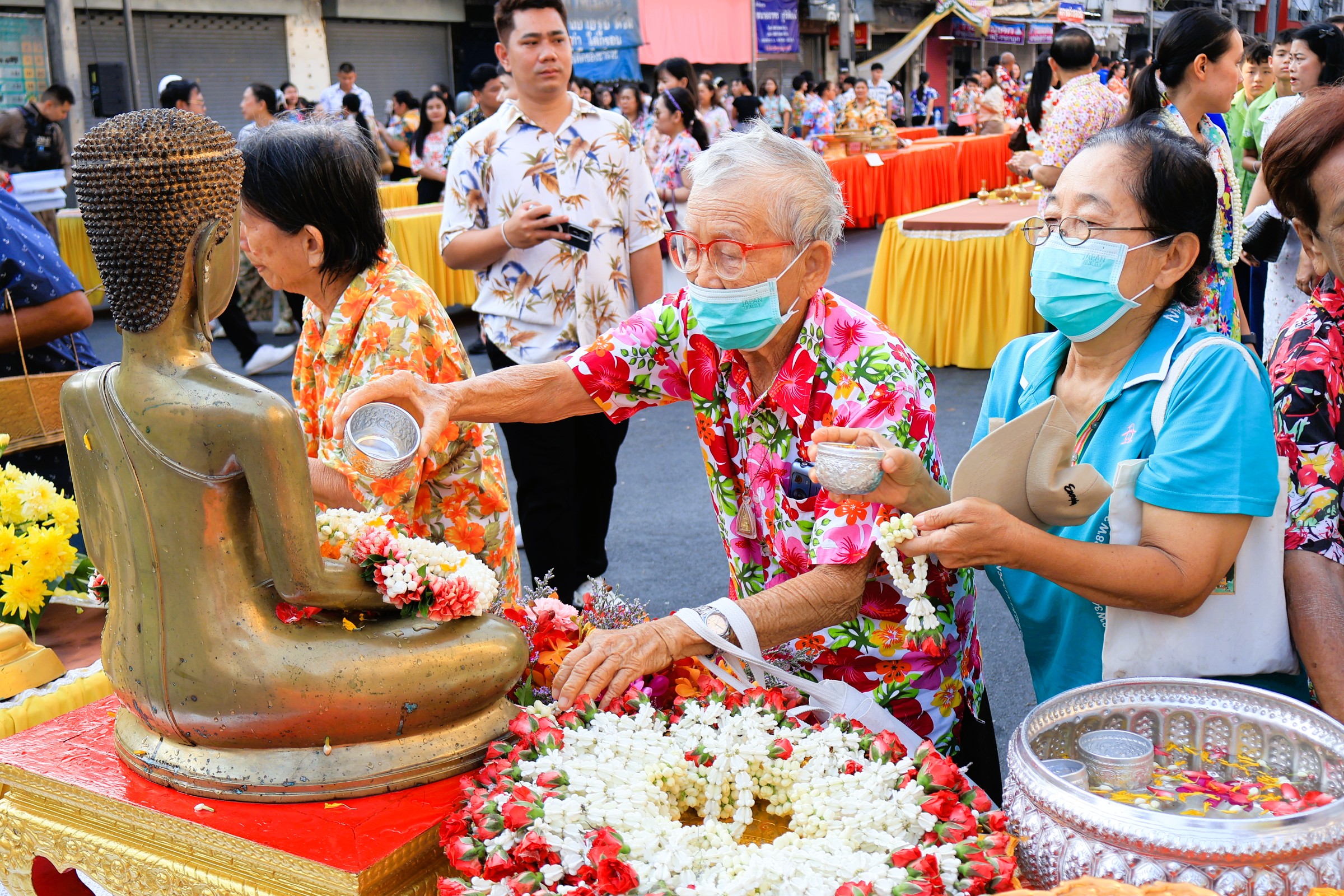 ซึ่งบรรยากาศภายในบริเวณงานเป็นไปด้วยความเบิกบานและอบอุ่น โดยคณะผู้บริหาร เจ้าหน้าที่ และประชาชนทั่วไปพร้อมใจกันแต่งกายด้วย "ชุดผ้าไทย" และ "เสื้อลายดอก" ที่มีสีสันสดใส เข้าร่วมพิธีกันอย่างพร้อมเพรียง เพื่อความเป็นสิริมงคลของตนเองและครอบครัว รวมทั้งส่งเสริมและอนุรักษ์ศิลปวัฒนธรรมประเพณีอันดีของไทย ส่งเสริมความรัก ความอบอุ่นในครอบครัวและสังคมให้อยู่ร่วมกันอย่างมีความสุข ตลอดถึงเป็นการแสดงออกถึงความกตัญญูกตเวทีต่อผู้ใหญ่ผู้มีพระคุณ