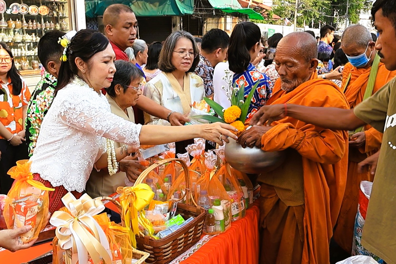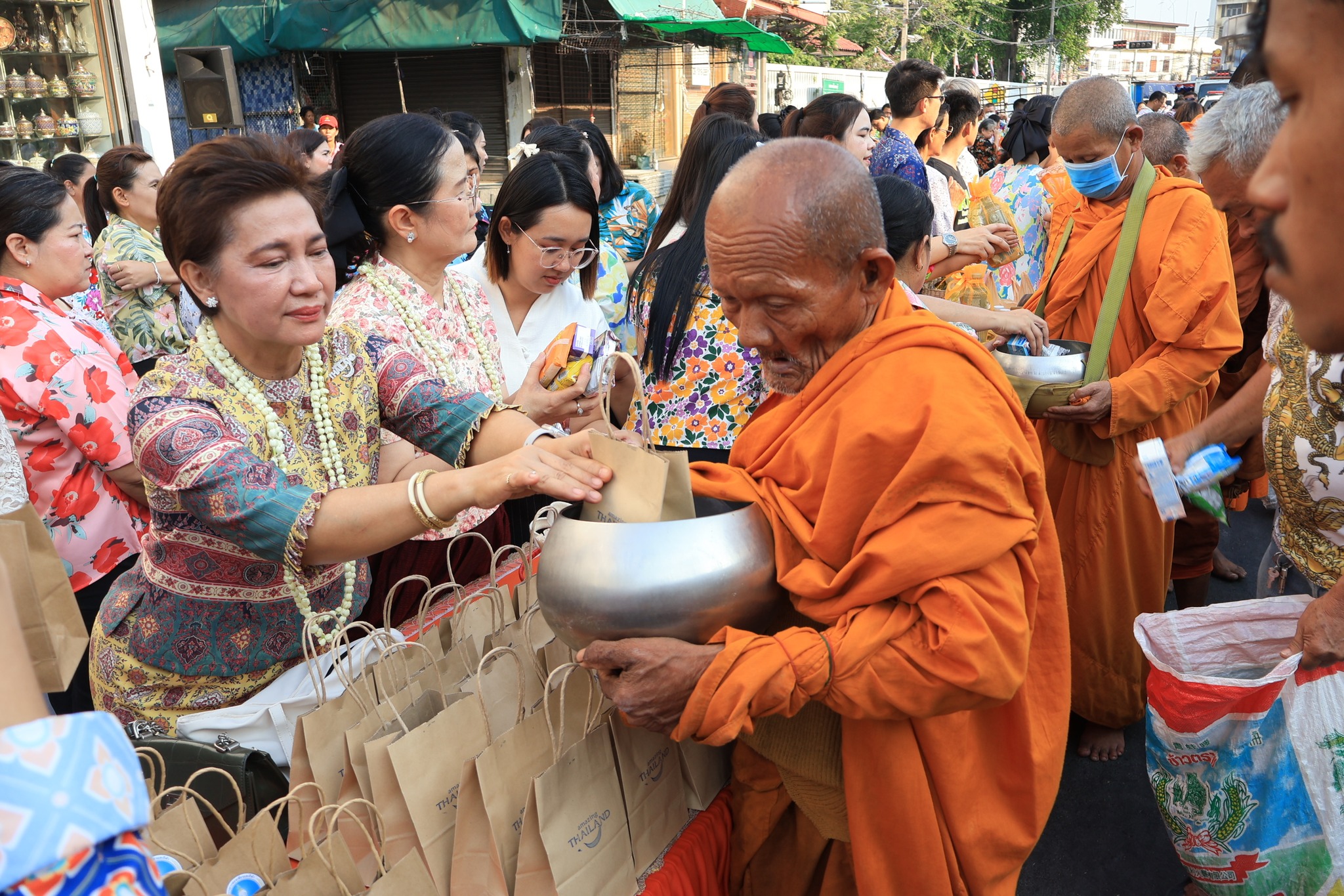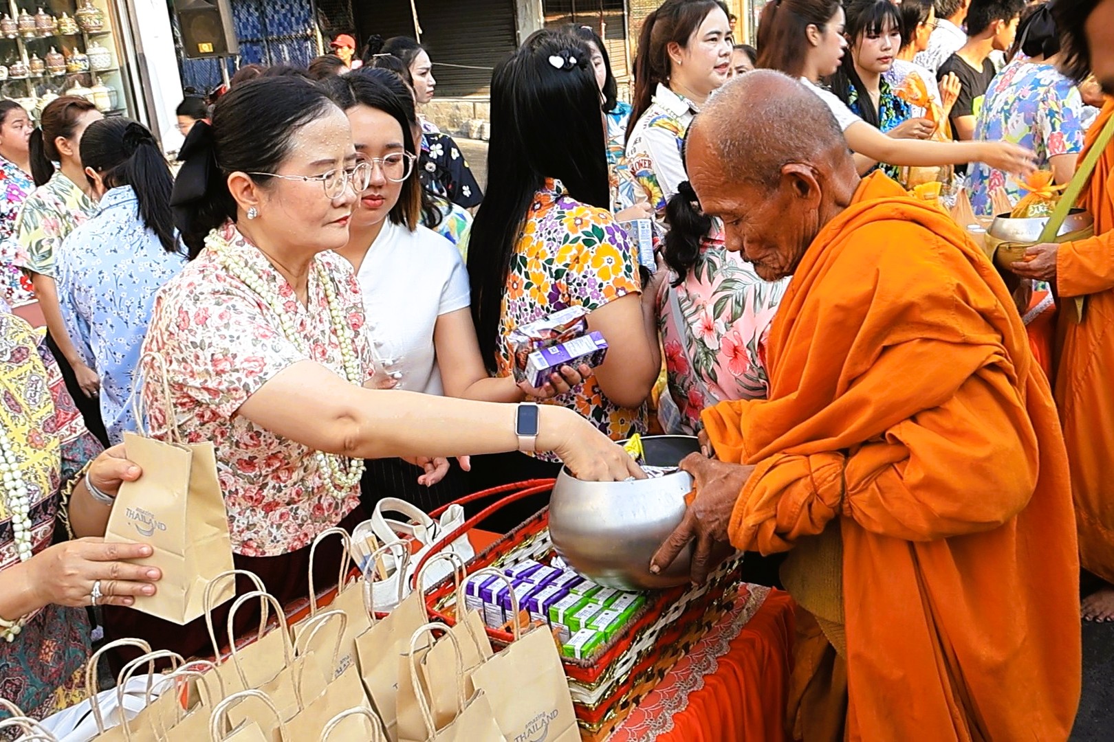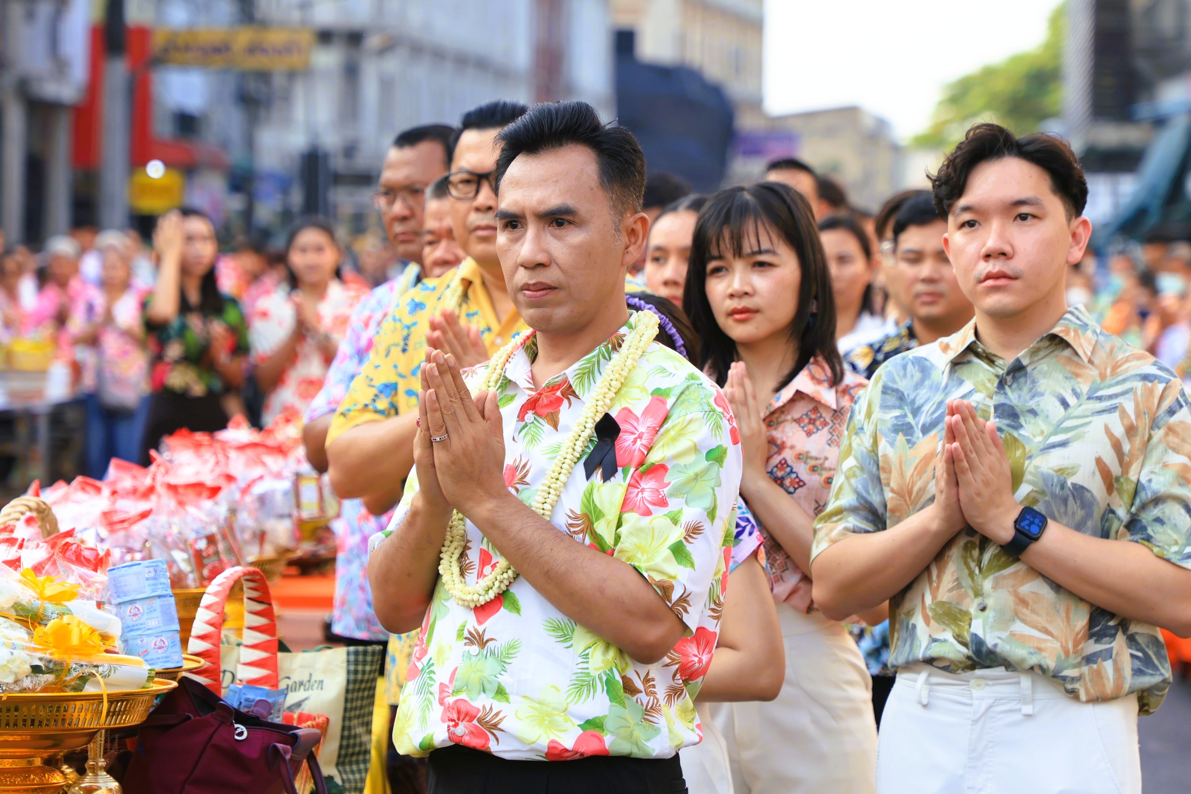 ซึ่งบรรยากาศภายในบริเวณงานเป็นไปด้วยความเบิกบานและอบอุ่น โดยคณะผู้บริหาร เจ้าหน้าที่ และประชาชนทั่วไปพร้อมใจกันแต่งกายด้วย "ชุดผ้าไทย" และ "เสื้อลายดอก" ที่มีสีสันสดใส เข้าร่วมพิธีกันอย่างพร้อมเพรียง เพื่อความเป็นสิริมงคลของตนเองและครอบครัว รวมทั้งส่งเสริมและอนุรักษ์ศิลปวัฒนธรรมประเพณีอันดีของไทย ส่งเสริมความรัก ความอบอุ่นในครอบครัวและสังคมให้อยู่ร่วมกันอย่างมีความสุข ตลอดถึงเป็นการแสดงออกถึงความกตัญญูกตเวทีต่อผู้ใหญ่ผู้มีพระคุณ