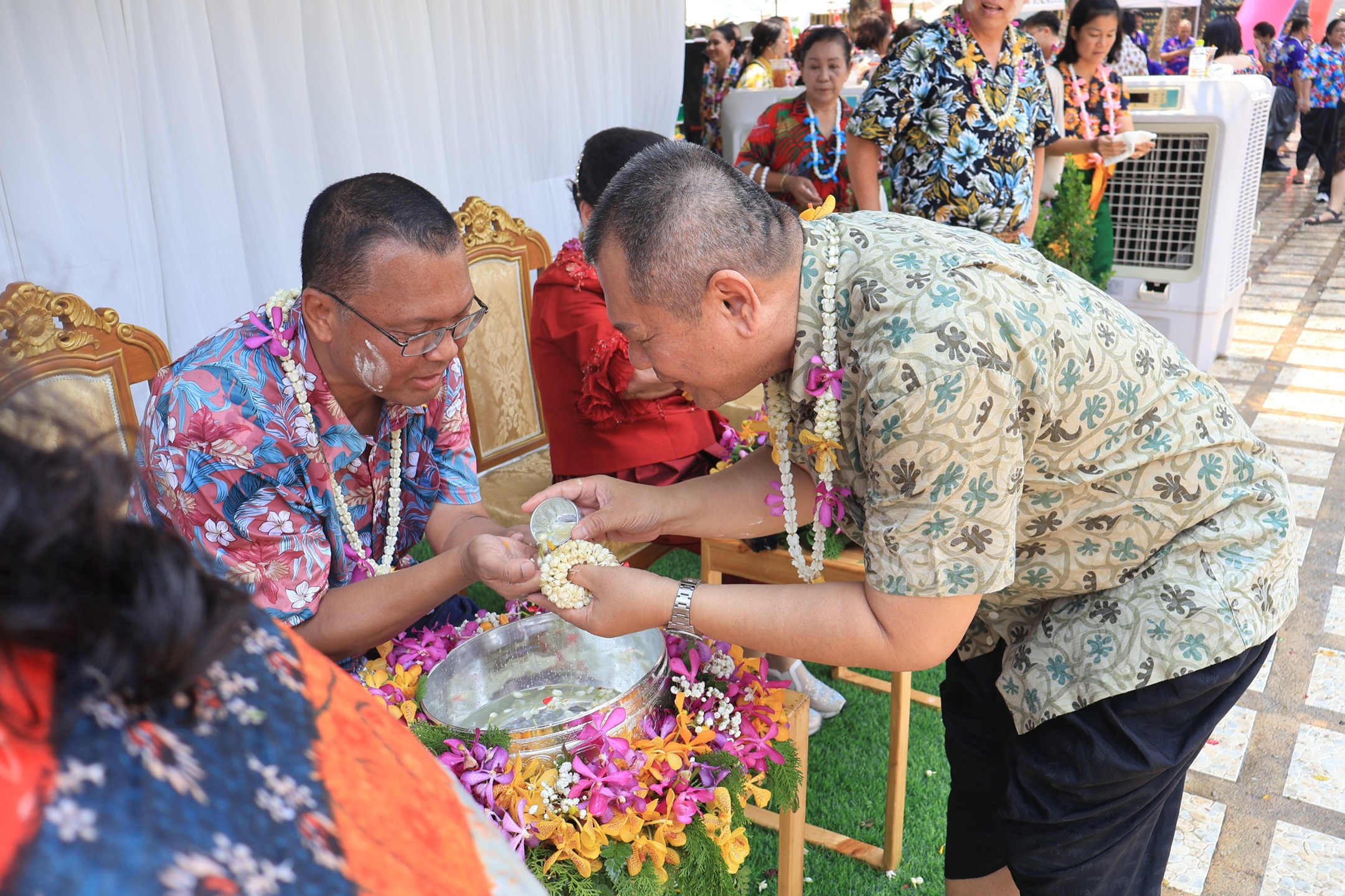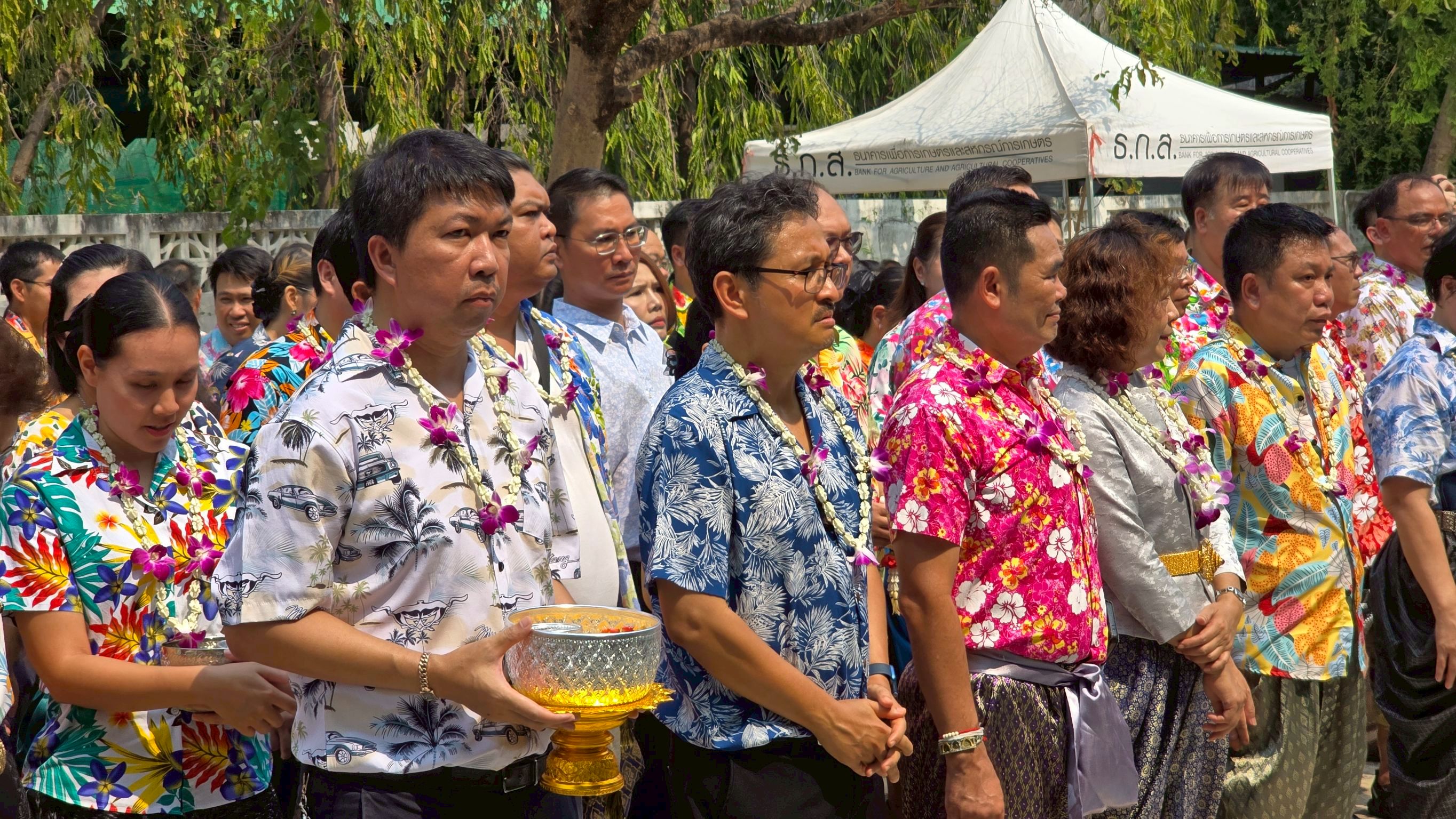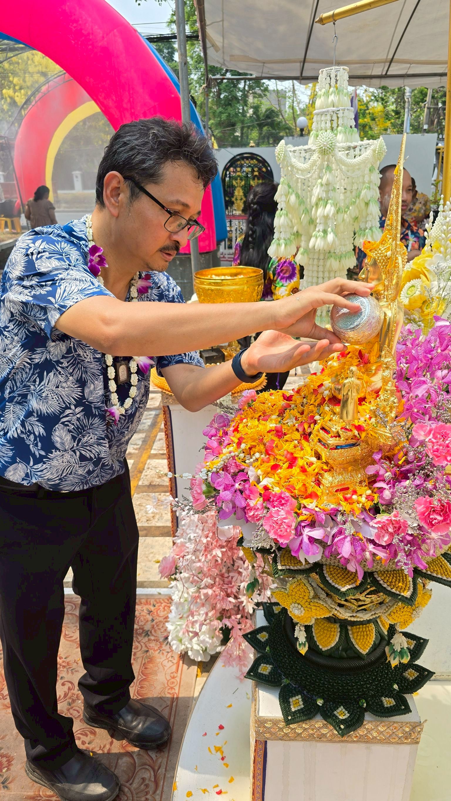 วันศุกร์ที่ 17 เมษายน 2569 เวลา 9.30 น. นายสุขสันต์ เอี่ยมโสภณ อุตสาหกรรมจังหวัดลพบุรี พร้อมด้วย นายเฉลิมพล โครตมี หัวหน้ากลุ่มโรงงานอุตสาหกรรม นางสาวรัชกร จันทร์ไข่ หัวหน้ากลุ่มส่งเสริมและพัฒนาอุตสาหกรรม เข้าร่วมพิธีรดน้ำดำหัวและขอพรจาก นายวีรพงศ์ ฤทธิ์รอด ผู้ว่าราชการจังหวัดลพบุรี และผู้บริหารระดับสูงของจังหวัดลพบุรี ณ จวนผู้ว่าราชการจังหวัดลพบุรี อำเภอเมืองลพบุรี จังหวัดลพบุรี โดยมี นายพิษณุ ประภาธนานันท์ ปลัดจังหวัดลพบุรี นำคณะหัวหน้าส่วนราชการ เจ้าหน้าที่ องค์กรปกครองส่วนท้องถิ่น ภาคเอกชน และประชาชนชาวลพบุรี ต่างพร้อมใจกันแต่งกายด้วย ”ชุดไทยนุ่งโจงกระเบน” และ ”เสื้อลายดอก” สีสันสดใส เพื่อเข้าร่วมพิธี เนื่องในโอกาสวันสงกรานต์หรือวันขึ้นปีใหม่ไทย ประจำปี 2569